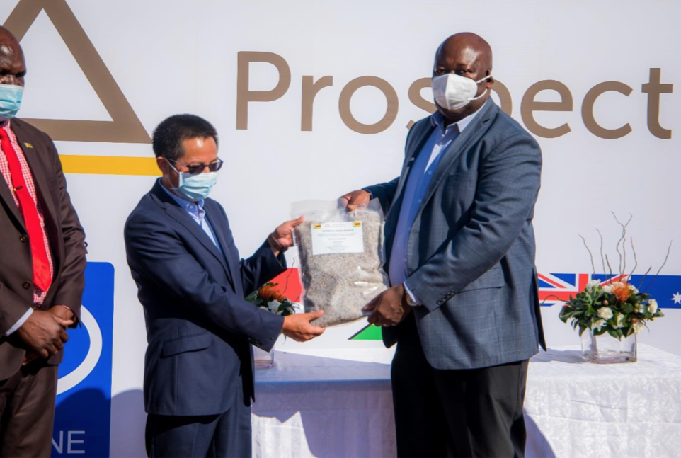 近日,333体育资源集团股份有限公司(以下简称“333体育资源”)入股的澳大利亚Prospect Resources Ltd.(以下简称“PSC”)正式向333体育资源交付第一批透锂长石精矿样品。交付仪式在津巴布韦Arcadia矿区隆重举行,由津巴布韦东马绍纳兰省国务部长 Aplonia Munzverengwi 主持,津巴布韦矿业和矿业发展部长 Winston Chitando 等多位嘉宾见证了本次交付仪式,333体育资源总裁助理、津巴布韦子公司总经理王振华代表333体育资源接收了第一批样品。